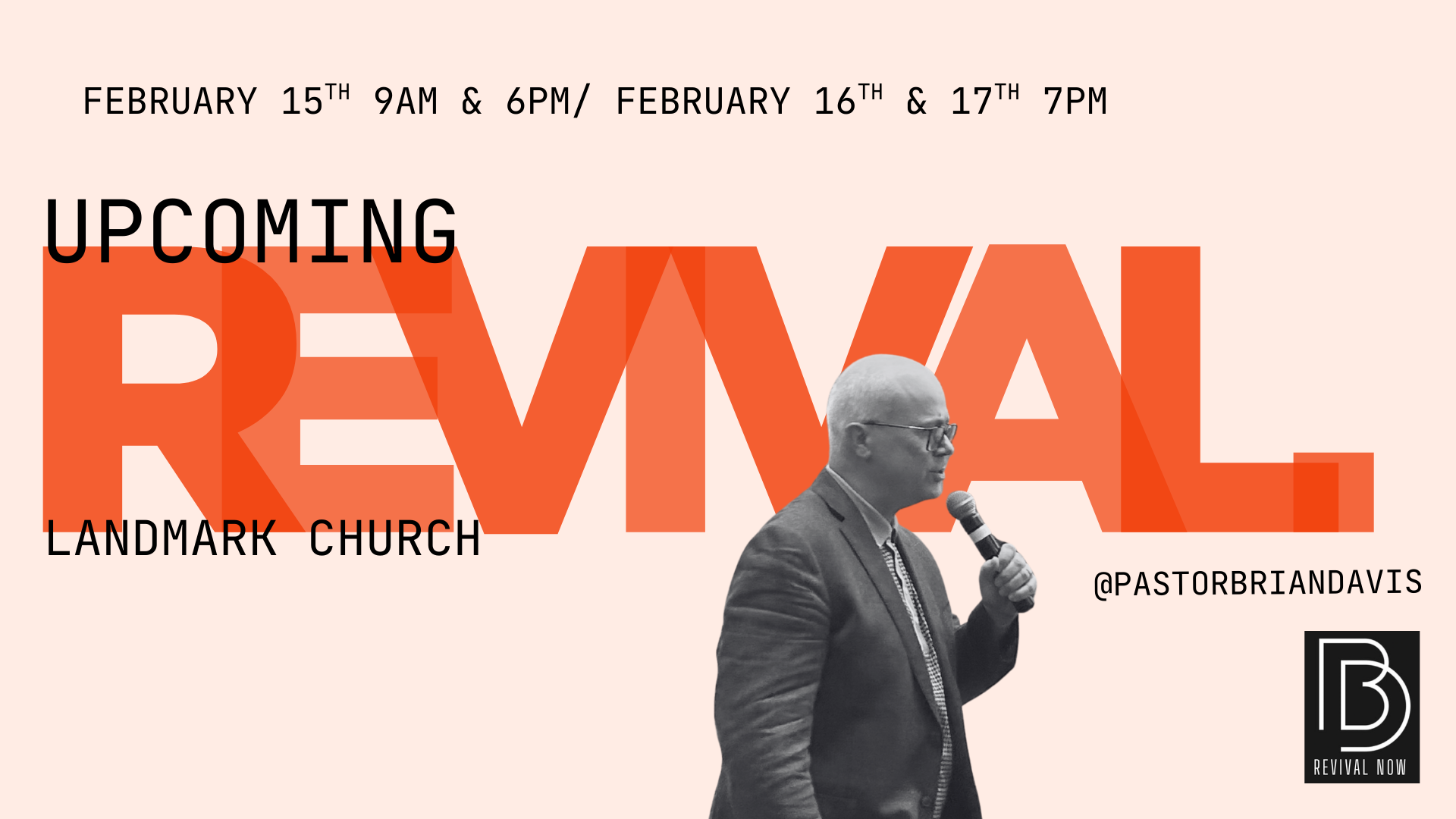 Join us this February 15-17 at Landmark Church as Pastor Brian Davis brings the word of God. We are praying for revival to break out, and for your freedom in Christ! Find out more information @pastorbriandavis on Instagram and Facebook. We look forward to seeing you there!